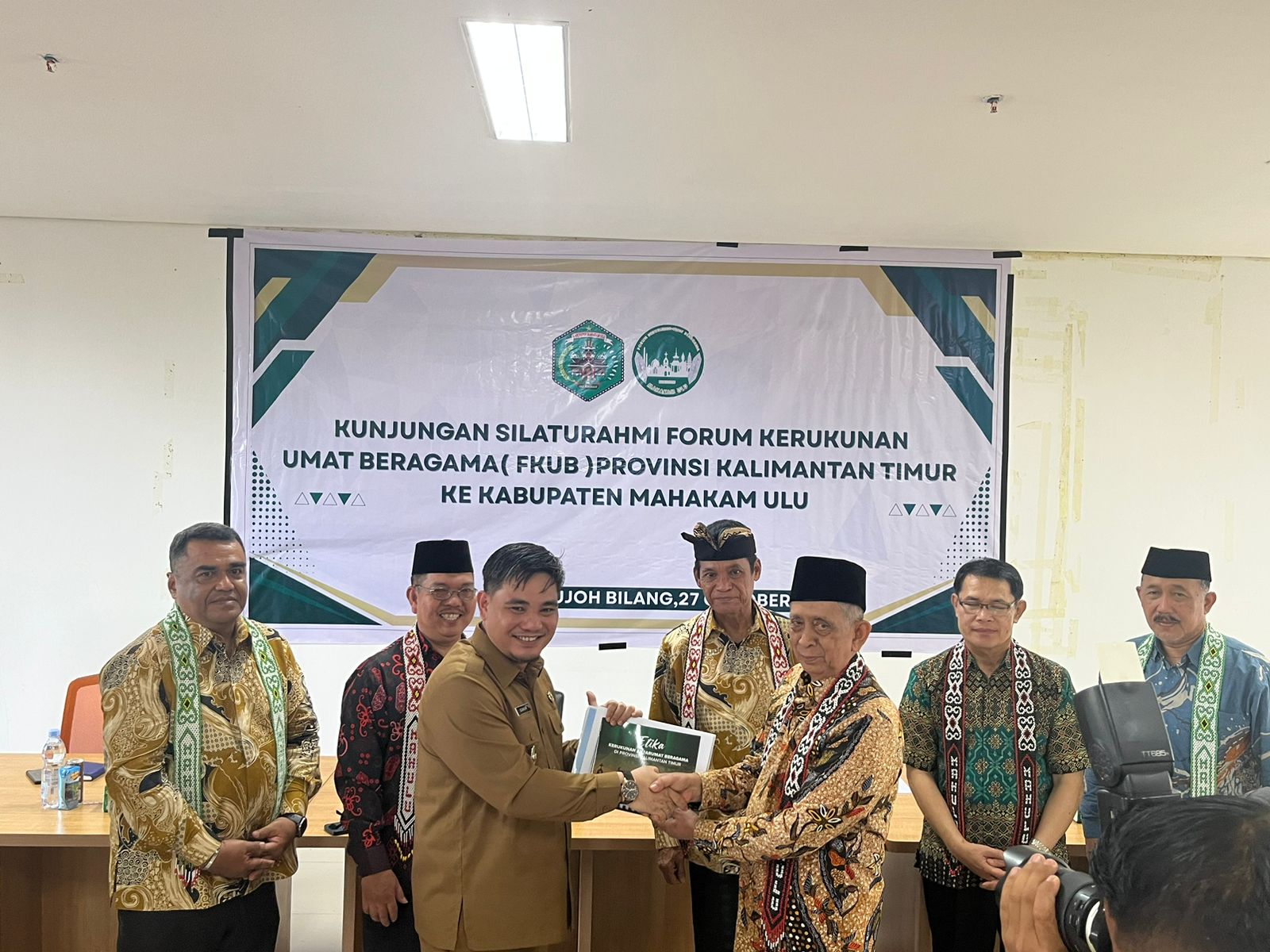 Upaya mempererat hubungan antarumat beragama di wilayah perbatasan kembali digelorakan. Forum Kerukunan Umat Beragama (FKUB) Provinsi Kalimantan Timur menggelar kunjungan silaturahmi ke Kabupaten Mahakam Ulu, Senin (27/10/2025) sore, bertempat di Ruang Cafetaria Kantor Bupati Mahakam Ulu.