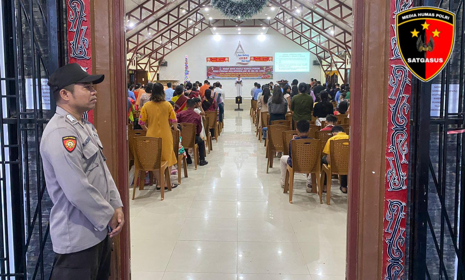 Guna menghadirkan negara dan sosok Polri di tengah masyarakat yang melaksanakan ibadah Natal tahun 2024 dan tahun baru 2025, Polres Melawi melakukan pengamanan di sejumlah gereja yang ada di Nanga Pinoh salah satunya jemaat Gereja HKBP Sion Nauli Desa Sidomulyo Kecamatan Nanga Pinoh, pengamanan di pimpin AKP Dhanie Sukmo Widodo selaku perwira pengendali.