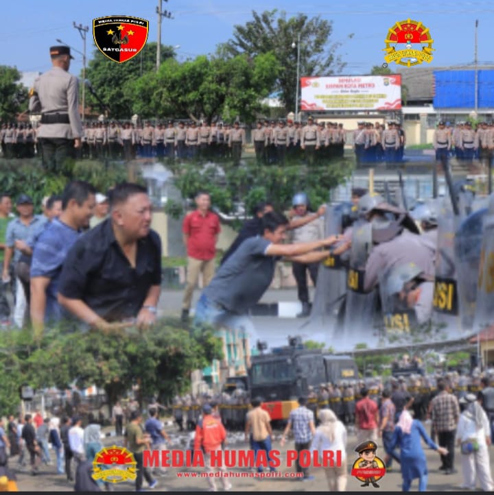Polres Metro menggelar kegiatan simulasi Sistem Pengamanan Kota (Sispamkota) dalam rangka meningkatkan kemampuan dan kesiapsiagaan personel dalam menghadapi situasi kontijensi di wilayah hukum Polres Metro. Kegiatan tersebut dilaksanakan di halaman apel Mapolres Metro dan diikuti oleh personel Polres Metro, TNI, serta Satuan Polisi Pamong Praja (Satpol PP). Jumat, (17/10/25).