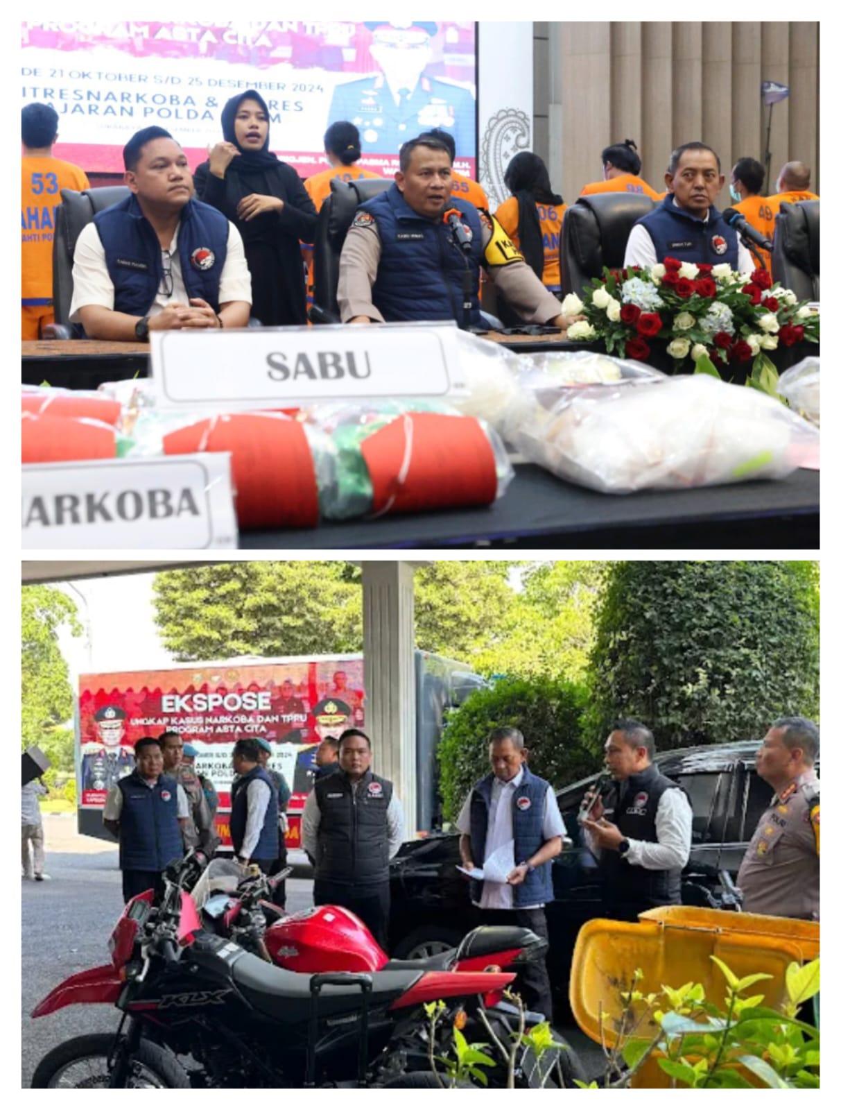 Bandar narkoba dan Pencucian Uang (TPPU) berhasil di tangkap oleh Polres Mojokerto Kota dan gelar di Polda Jatim, Senin (30/12/2024).