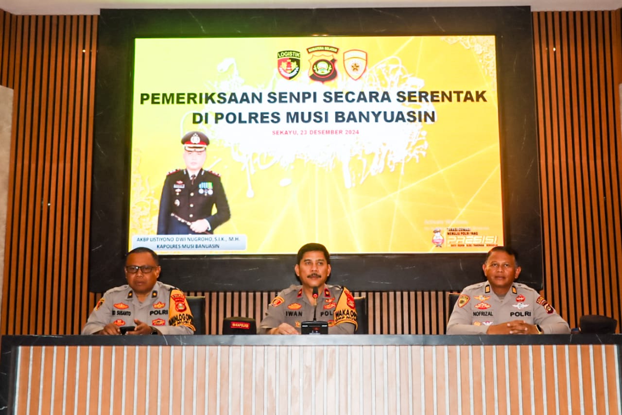 Kapolres musi banyuasin Akbp Listiyono Dwi Nugroho, S.ik, M.H melalui Wakapolres Muba Kompol Iwan Wahyudi, SH, mengatakan bahwa kegiatan ini merupakan tindak lanjut dari Mabes Polri secara Serentak seluruh Indonesia untuk melaksanakan Apel Senpi yang dipinjam pakaikan kepada anggota Polres dan Polsek Jajaran.