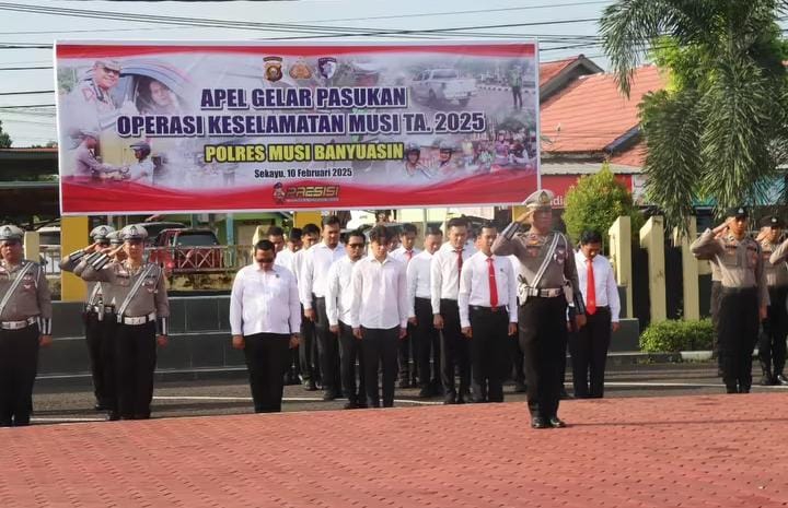 Pagi tadi, Polres Musi Banyuasin melaksanakan Gelar Pasukan Operasi Keselamatan Musi Tahun 2025, Akbp Listiyono Dwi Nugroho, S.ik, M. H Kapolres Muba memimpin Langsung yang diikuti oleh dinas terkait yang bertempat di halaman Mapolres Muba, Senin (10/02/25).