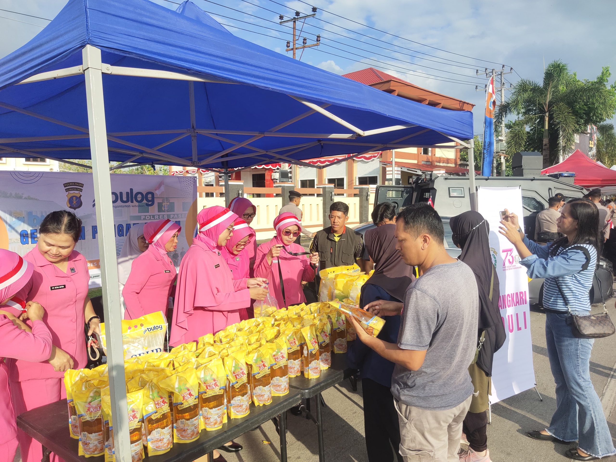 Kegiatan yang berlangsung sejak pagi ini dipimpin langsung oleh Kapolres Paser AKBP Novy Adi Wibowo, S.I.K., M.H., dan disambut antusias oleh masyarakat. Ratusan warga tampak memadati stand-stand sembako murah yang menyediakan beras SPHP, minyak goreng, dan gula pasir dengan harga di bawah pasaran.