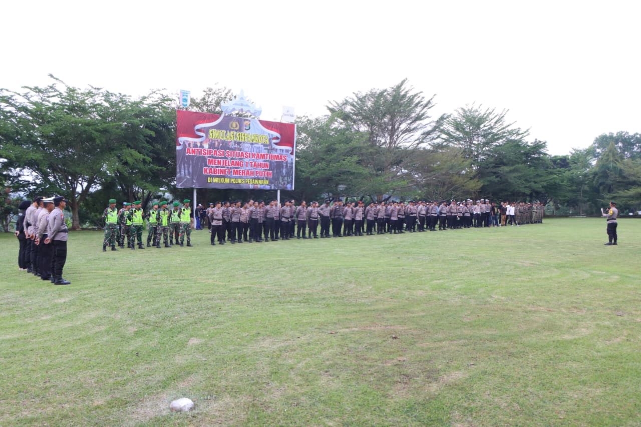 Polres Pesawaran Gelar Simulasi Sispamkota, Siagakan Personel Hadapi Potensi Gangguan Kamtibmas jelang 1 Tahun Kabinet Merah Putih