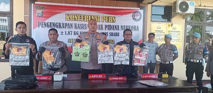 Polres Pinrang menggelar press release terkait pengungkapan kasus narkoba jenis sabu-sabu seberat 1,87 kilogram. Pengungkapan ini merupakan hasil kerja keras tim penyidik Polres Pinrang dalam memberantas peredaran narkoba di wilayah Pinrang.