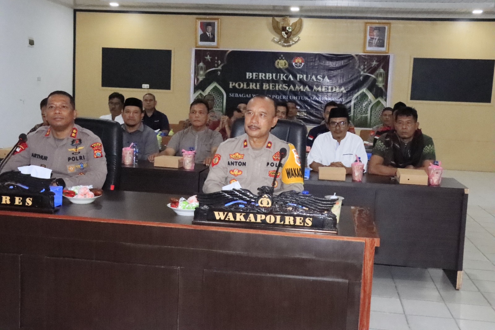 Polres Poso menggelar kegiatan buka bersama dengan awak media yang bertempat di Aula Andisapa Sudirman Polres Poso, kegiatan tersebut dipimpin oleh Kapolres Poso, AKBP Arthur Sameaputty, S.I.K, didampingi oleh Pju Polres Poso. Kamis(13/3/25).