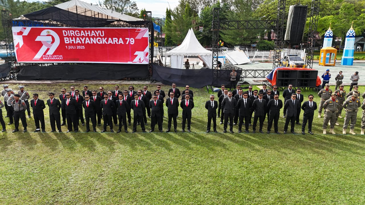 Upacara peringatan Hari Bhayangkara ke-79 ini juga mengusung tema “Polri Untuk Masyarakat”, sebagai bentuk komitmen Polri dalam meningkatkan pelayanan, pengabdian, dan sinergitas dengan seluruh lapisan masyarakat.