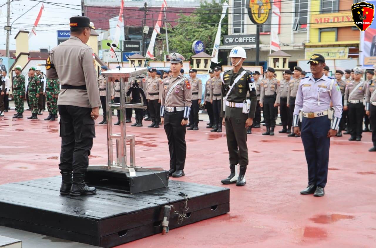 Apel Gelar Pasukan tersebut dipimpin langsung oleh Kapolres Sanggau, AKBP Sudarsono, S.I.K., M.Si., dan turut dihadiri sejumlah unsur Forkopimda dan instansi terkait. Hadir dalam apel tersebut PJU Polres Sanggau, Pasi Ops Kodim 1204/Sanggau Kapten Inf A.A. Siregar, Kepala Jasa Raharja Kabupaten Sanggau Jafar, perwakilan Dinas Perhubungan Sanggau Dedi, serta Danki Brimob Sanggau Ipda Flayianus Hengki, S.E.