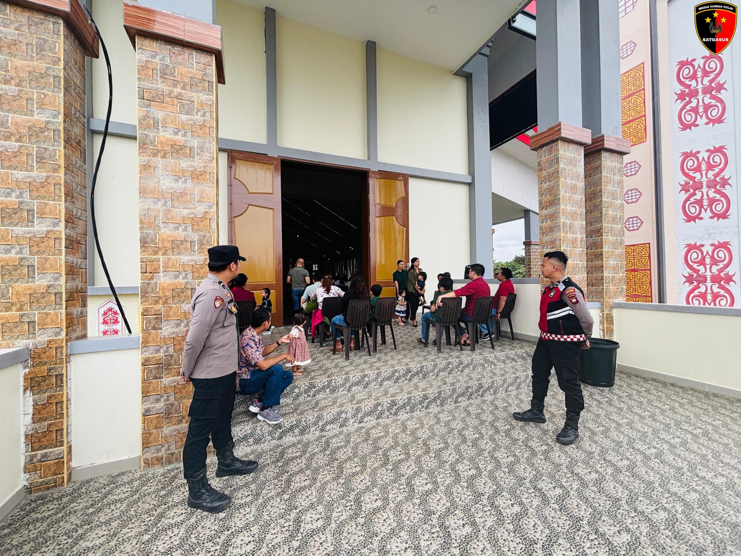 Pengamanan dimulai sejak pukul 09.00 WIB dan berlangsung tertib. Arus lalu lintas yang sempat padat akibat banyaknya jemaat yang datang, berhasil dikendalikan melalui pengaturan lalu lintas oleh personel yang bertugas di lapangan. Petugas tampak aktif mengatur kendaraan, membantu penyeberangan jemaat, dan menjaga kelancaran arus di depan gereja.