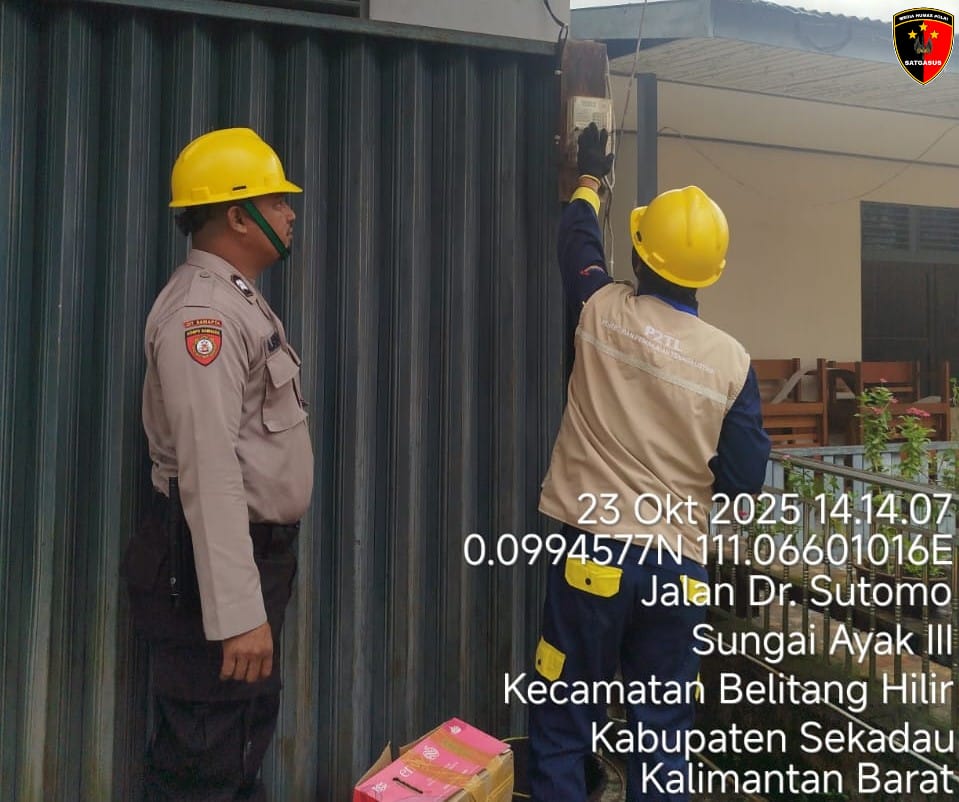 Polres Sekadau melalui Unit Pamobvit Satsamapta melaksanakan pengamanan kegiatan Penertiban Pemakaian Tenaga Listrik (P2TL) yang digelar oleh PT PLN ULP Sekadau, Kamis (23/10/2025).
