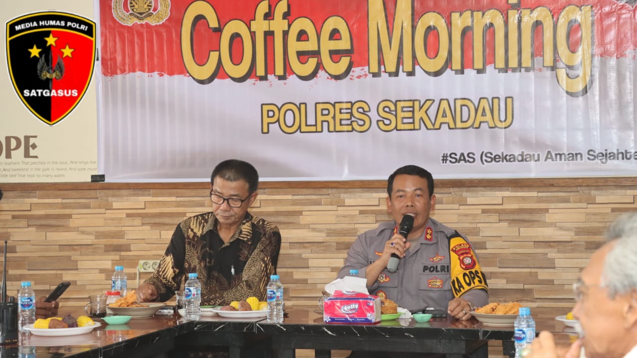 Acara Coffee Morning ini dihadiri langsung oleh Kapolres Sekadau AKBP Dr. I Nyoman Sudama, S.I.K., M.Si., Ketua DPRD Sekadau Hermanto, Sekretaris FKUB Sekadau Samsu Alam, Ketua MABM Sekadau Syafii Yanto, serta perwakilan Pabung Kodim 1204 Sanggau dan perwakikan dari berbagai organisasi masyarakat serta tokoh lintas agama.
