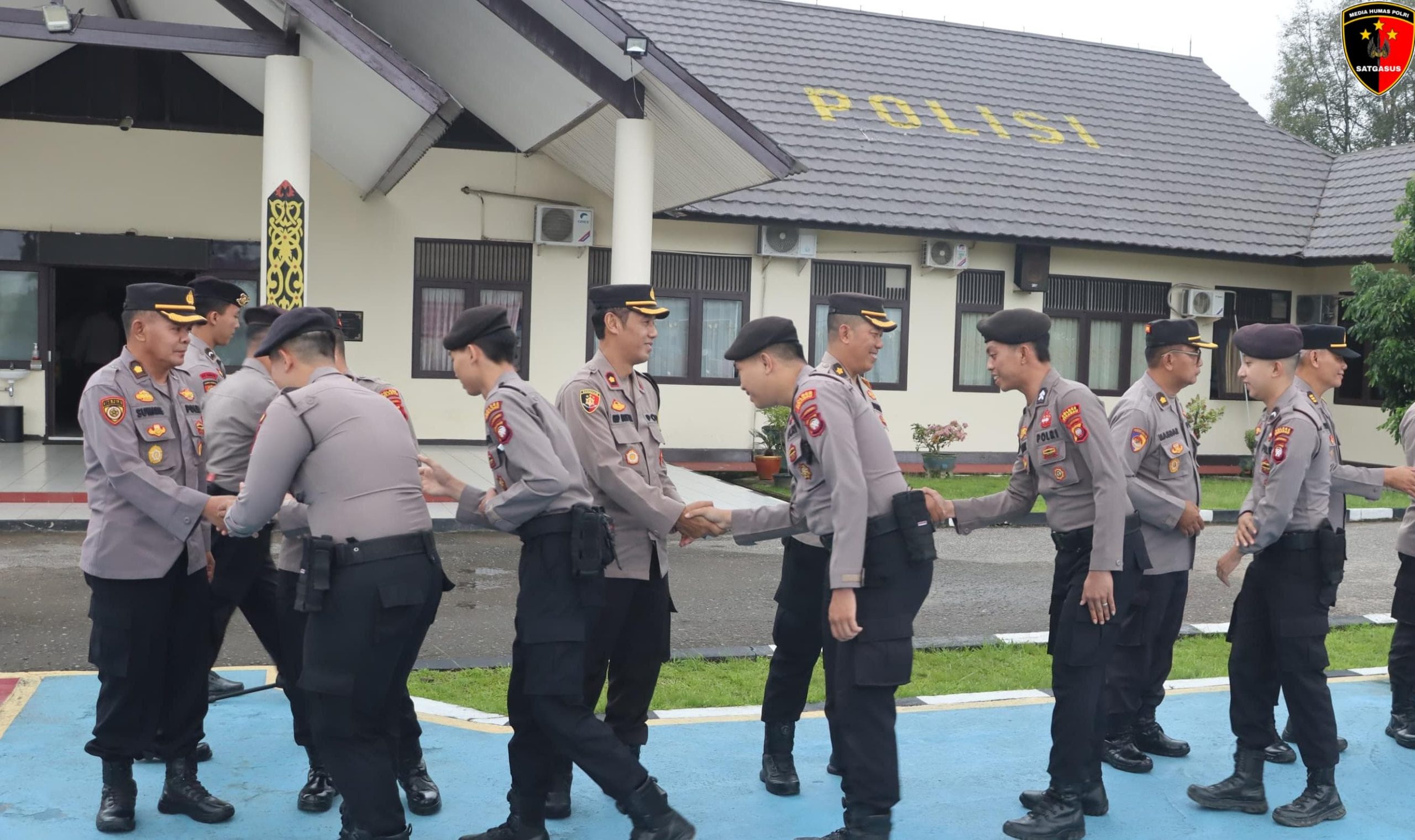 Apel pagi ini menjadi momentum penting untuk mempererat silaturahmi antarpersonel sekaligus melakukan pengecekan kesiapan anggota dalam melanjutkan tugas-tugas kepolisian pasca libur Lebaran.