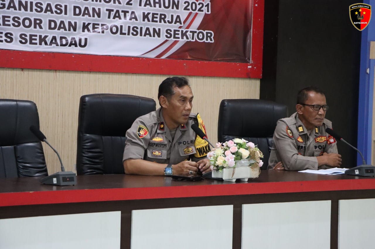 Polres Sekadau melalui Bagian Sumber Daya Manusia (SDM) melaksanakan sosialisasi Peraturan Polri Nomor 7 Tahun 2025 yang merupakan perubahan atas Perpol Nomor 2 Tahun 2021 mengenai Struktur Organisasi dan Tata Kerja (SOTK) pada tingkat Polres dan Polsek. Kegiatan berlangsung di Aula Bhayangkara Patriatama Polres Sekadau, Kamis (20/11/2025).