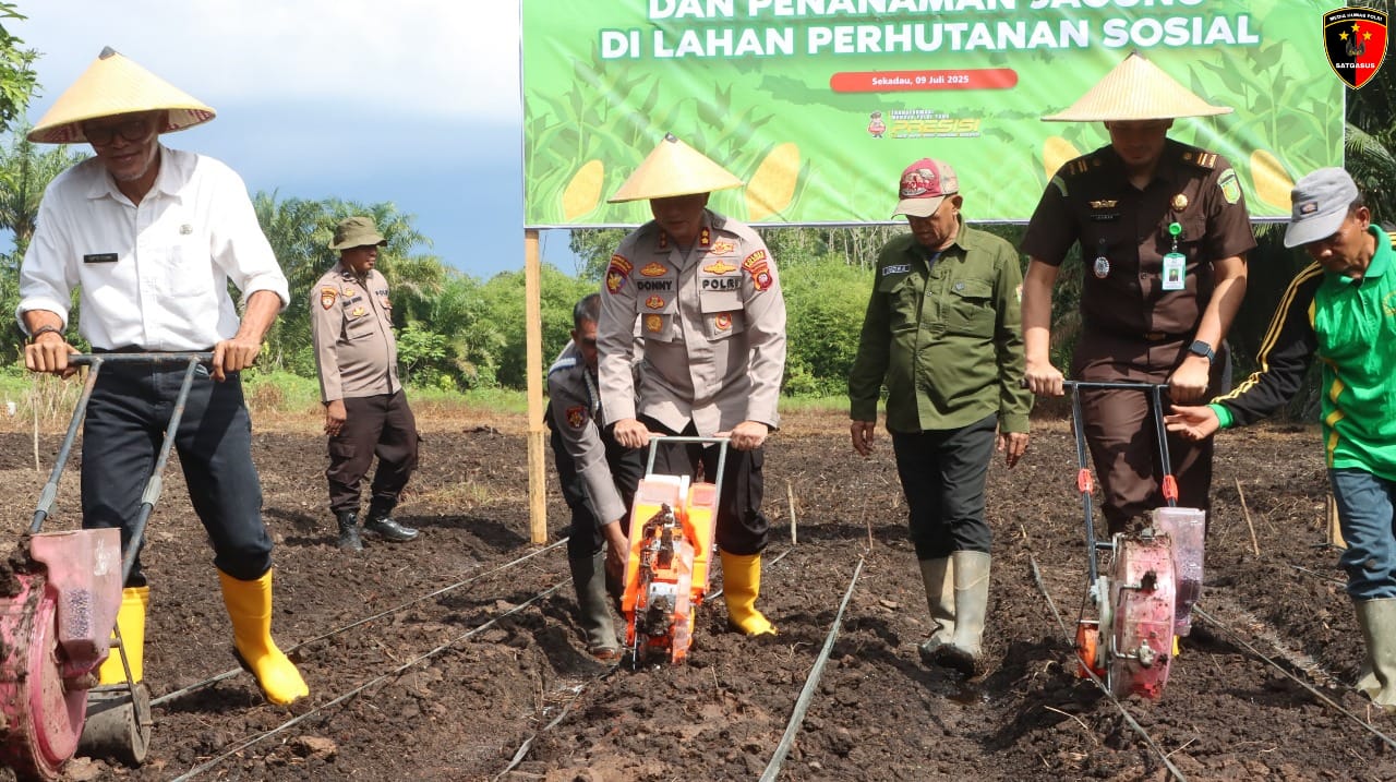 Polres Sekadau melaksanakan kegiatan Penanaman Jagung Serentak Kuartal III di Dusun Senuruk, Desa Sungai Ringin, Kecamatan Sekadau Hilir, Rabu (9/7/2025). Kegiatan ini menjadi bagian dari upaya mendukung program swasembada ketahanan pangan nasional yang dicanangkan pemerintah.