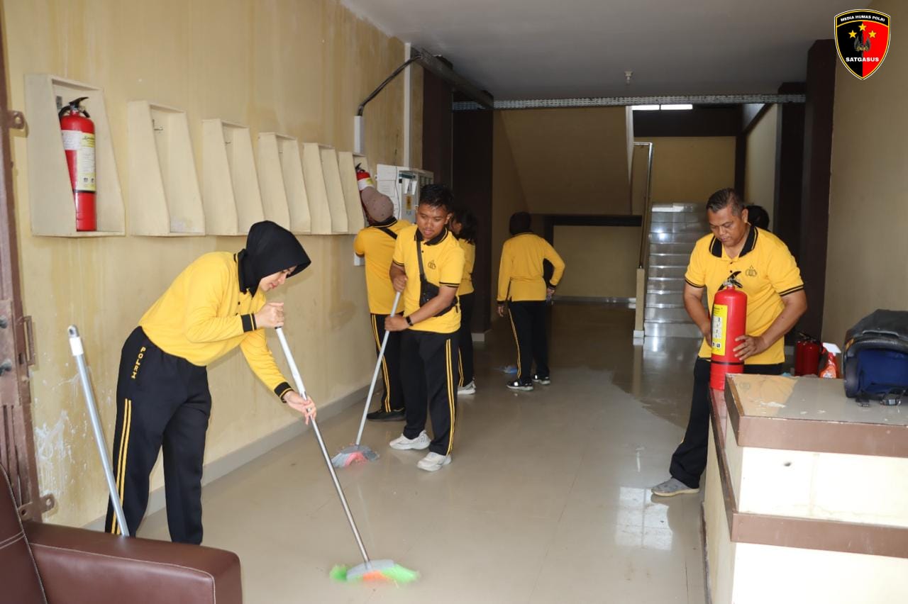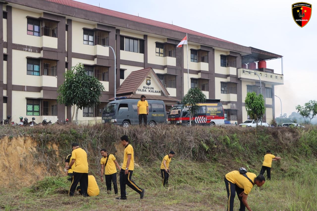 Menyongsong panen raya jagung serentak kuartal III dalam program Asta Cita Ketahanan Pangan, Polres Sintang menggelar kegiatan kurve atau kerja bakti di kawasan Rumah Susun (Rusun) Polda Kalbar, Sabtu (26/9) Pagi.