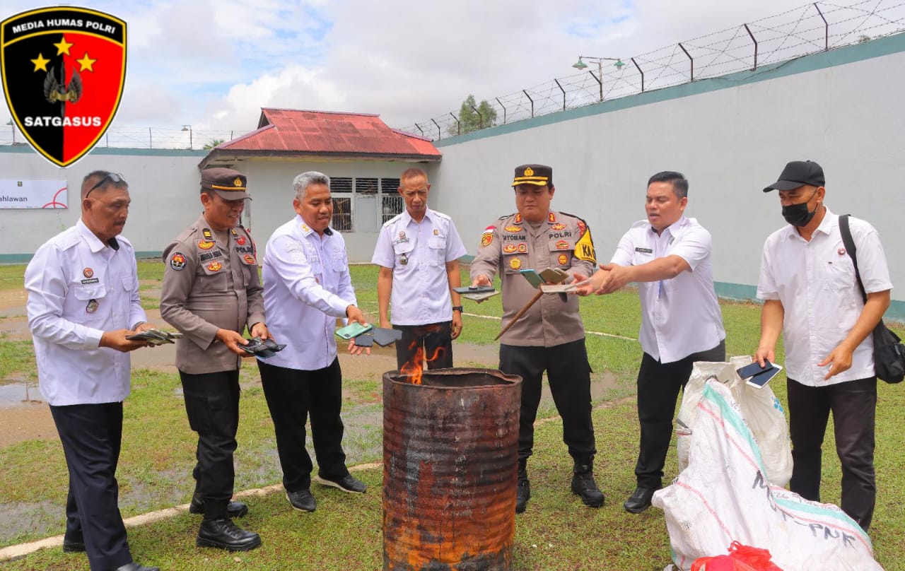 Tak berhenti disitu saja, rombongan Kapolres Sintang bersama Kepala BNNK juga melaksanakan pemusnahan terhadap barang sitaan yang merupakan hasil dari razia yang sempat dilakukan petugas Lapas.