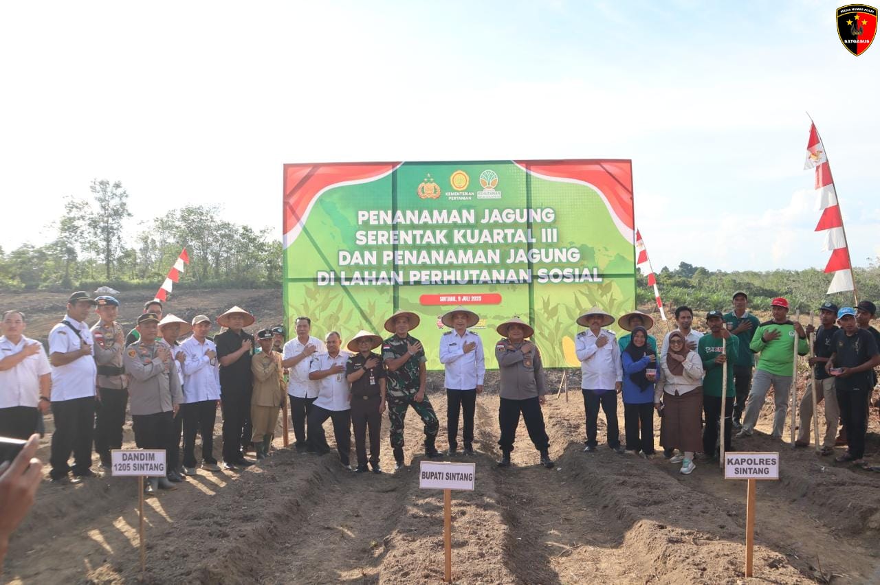Dalam rangka mendukung program swasembada pangan nasional 2025, Polres Sintang turut ambil bagian dalam kegiatan penanaman jagung serentak kuartal III tahun 2025. Kegiatan ini digelar di lahan Perhutanan Sosial, Desa Gurung Kempadik, Kecamatan Sungai Tebelian, Rabu (9/7) Siang.