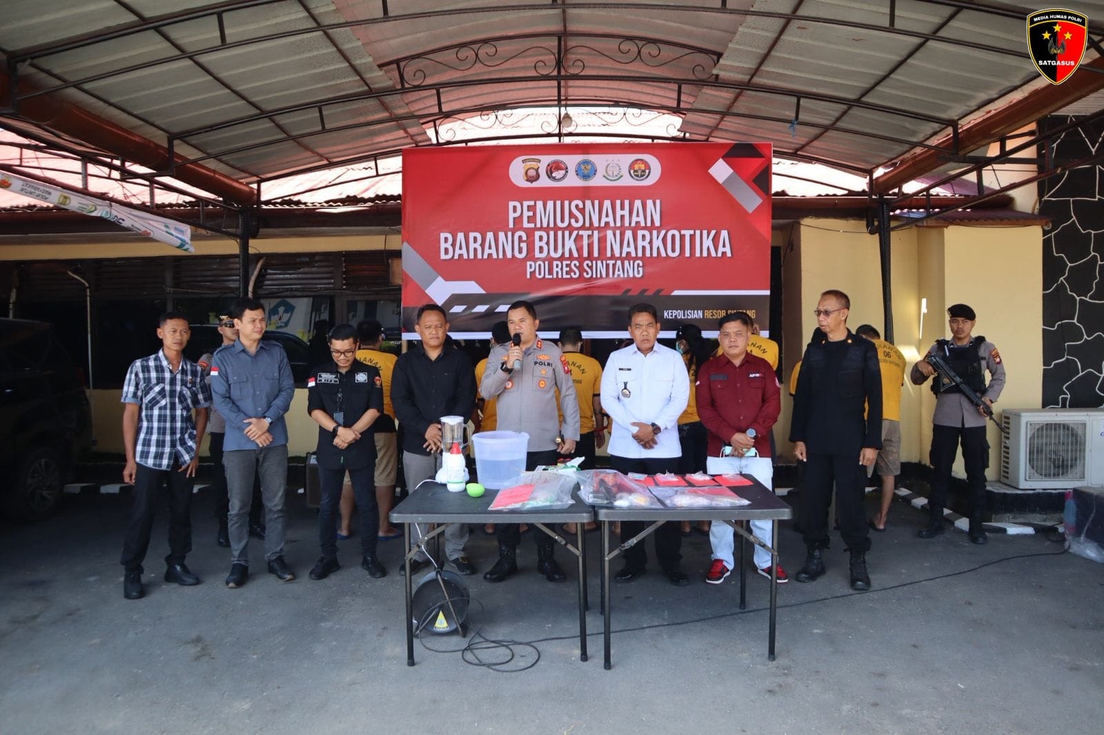 Polres Sintang menggelar kegiatan pemusnahan barang bukti narkotika hasil pengungkapan kasus yang dilakukan oleh Satuan Reserse Narkoba Polres Sintang selama periode Agustus hingga Oktober 2025.