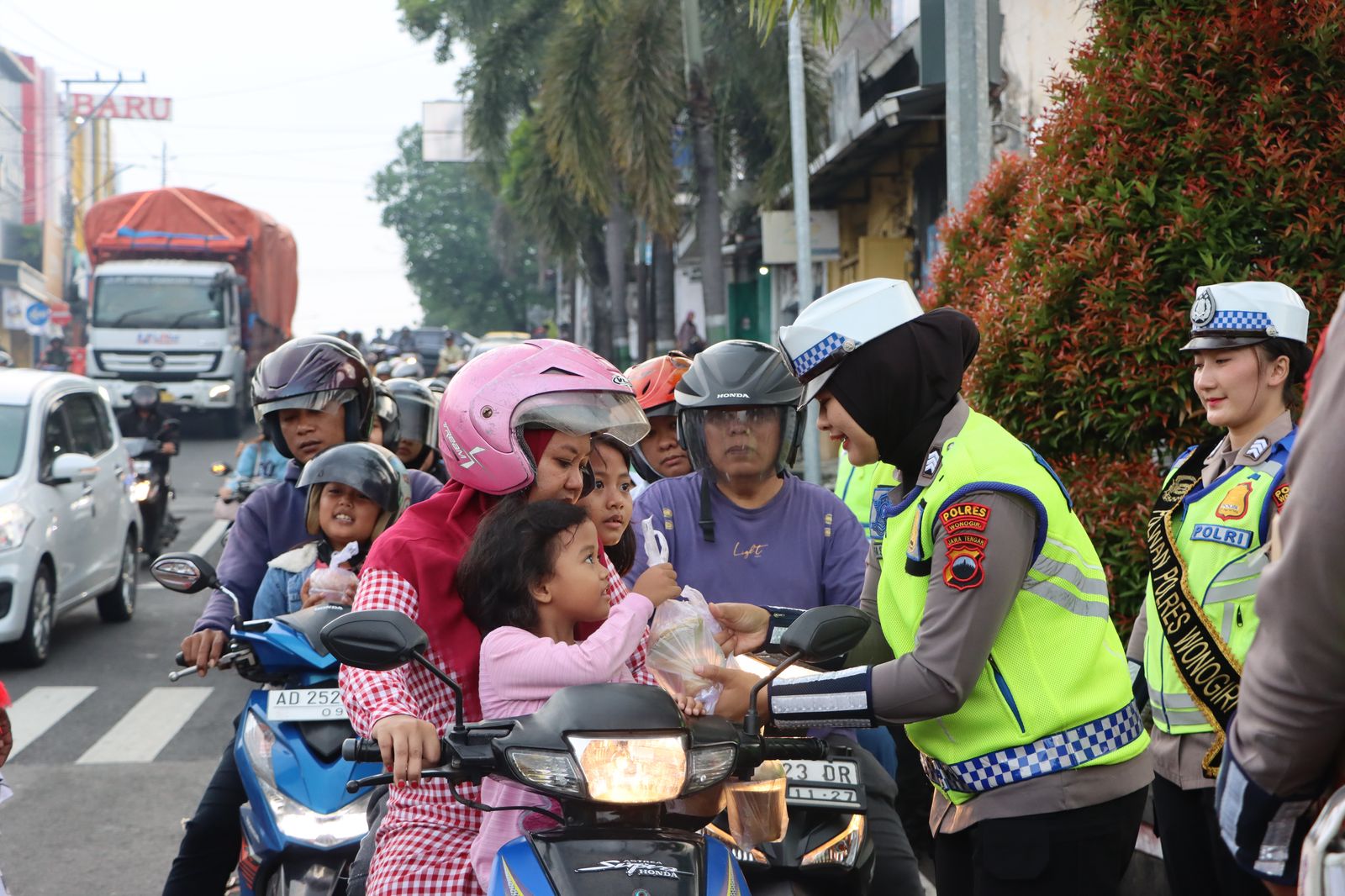 Polres Wonogiri manfaatkan momen bulan Ramadan untuk bagi takjil dan makanan berbuka puasa kepada pengguna jalan. Aksi sosial di simpang 4 Ponten Wonogiri ini dipimpin langsung Kapolres Wonogiri AKBP Jarot Sungkowo, S.H., S.I.K., pada Rabu petang (5/3/2025).