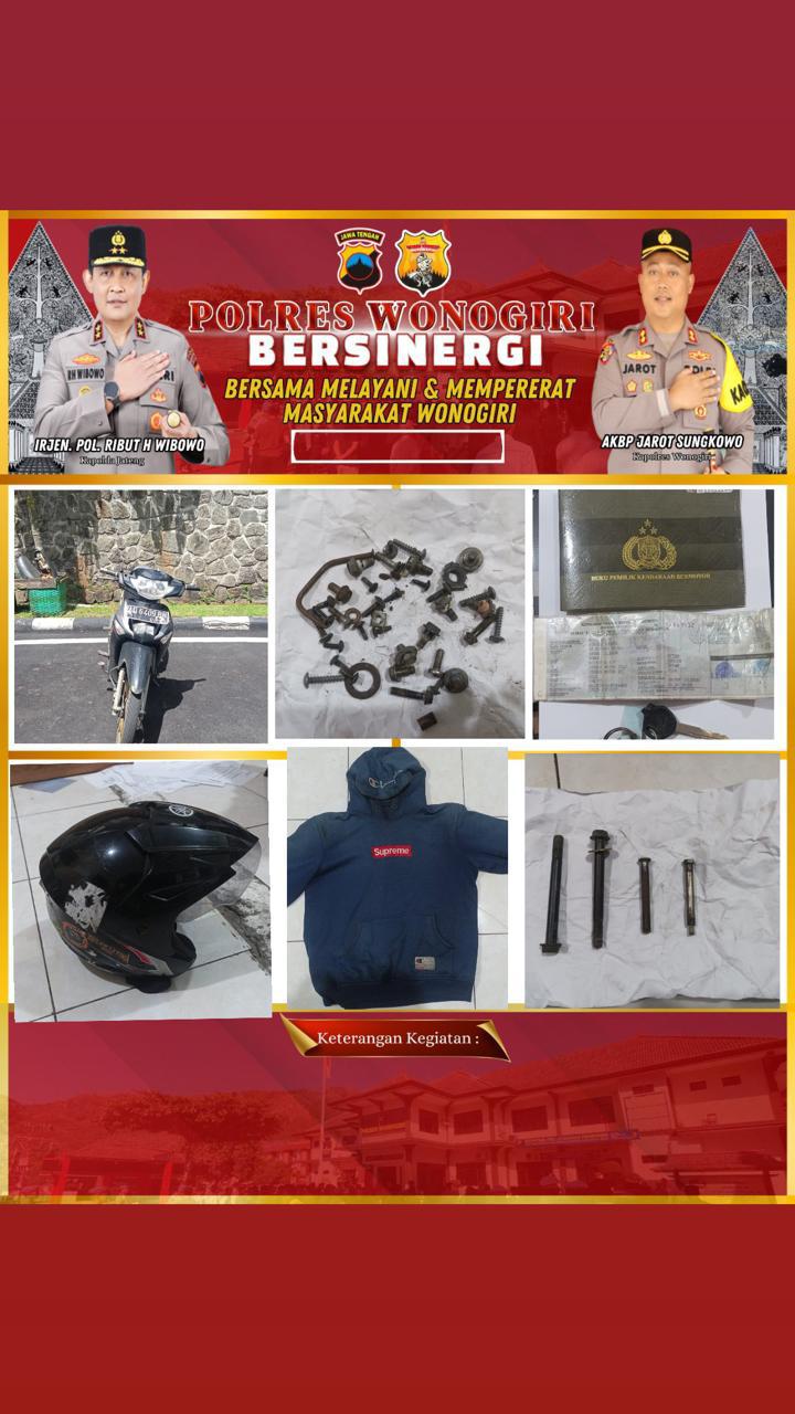 Sat Reskrim Polres Wonogiri berhasil mengungkap kasus pencurian sepeda motor di yang terjadi di Waduk Tandon Desa Pare Kec. Selogiri Kab. Wonogiri.