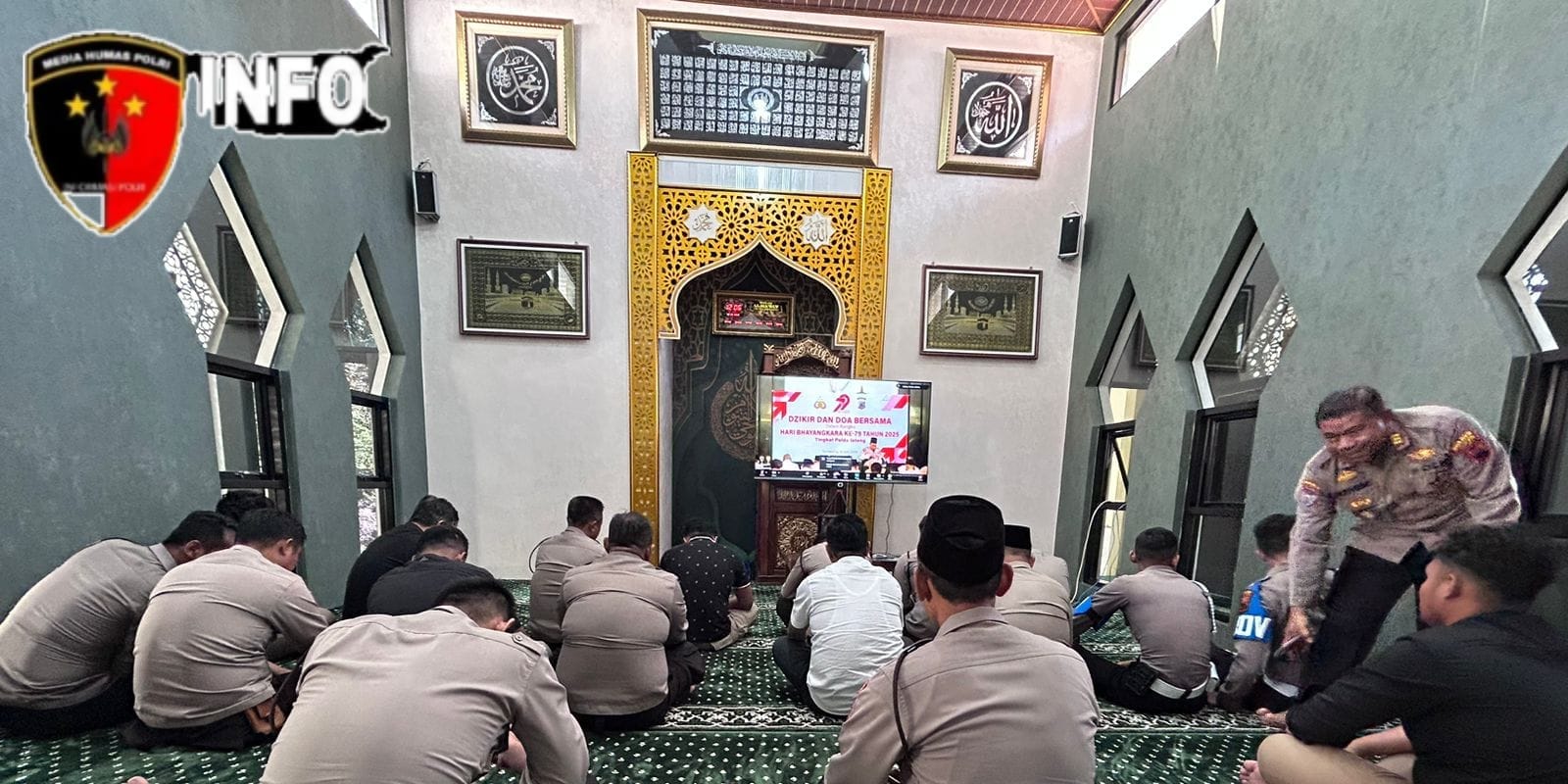 Dalam rangka memperingati Hari Bhayangkara ke-79 Tahun 2025, Polres Wonogiri mengikuti kegiatan Pembinaan Rohani dan Mental (Binrohtal) secara serentak tingkat Polda Jawa Tengah yang dilaksanakan melalui Zoom Meeting. Kegiatan tersebut digelar di Masjid Al Ma’ruf Polres Wonogiri dan dipimpin oleh Kabag SDM Kompol Marwanto, S.H., M.H.(18/6/25).