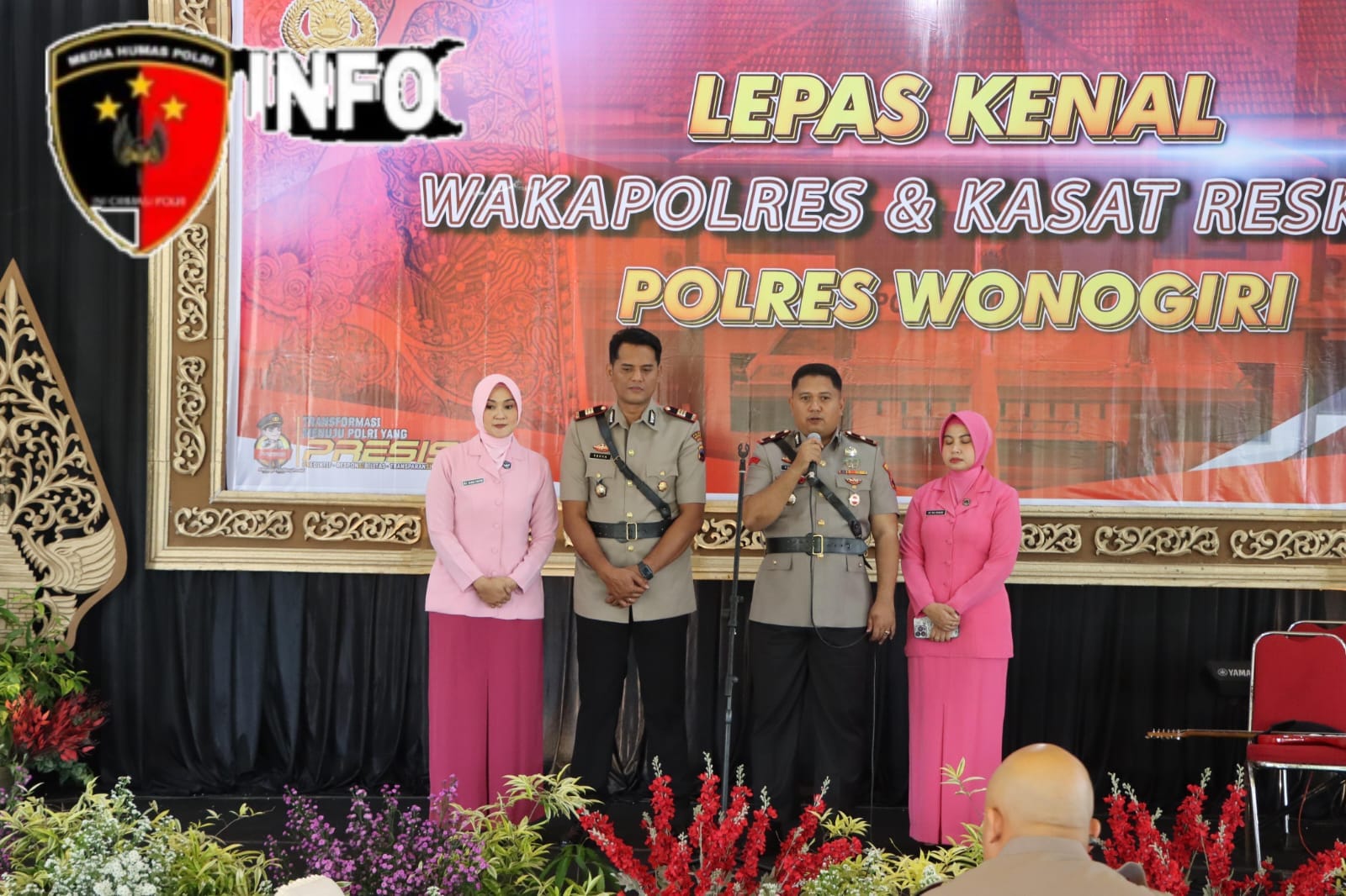 Dalam sambutannya, Kapolres Wonogiri, AKBP Jarot Sungkowo, S.H., S.I.K., menyampaikan ucapan terima kasih kepada pejabat lama atas dedikasi dan pengabdiannya selama menjabat di Polres Wonogiri.