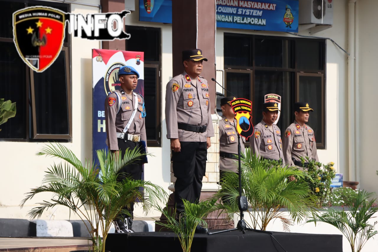 Wakapolres Wonogiri Kompol Parwanto, S.H., M.H., memimpin upacara Korp Raport kenaikan pangkat pengabdian setingkat lebih tinggi periode 1 Maret 2025 di Halaman Mapolres Wonogiri, Selasa (4/3/2025).