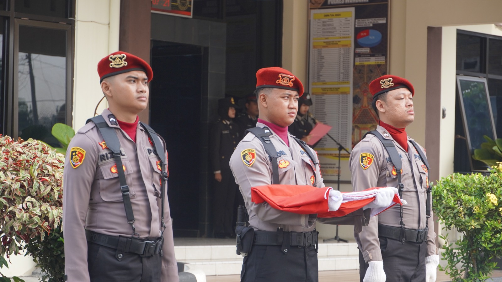 Bertindak selaku Inspektur upacara adalah AKBP Jarot Sungkowo, S.H., S.I.K., dalam amanatnya, Kapolres membacakan amanat dari menteri sosial RI Drs. H. Saifullah Yusuf, tema hari pahlawan tahun 2024 ini adalah “Teladani Pahlawanmu Cintai Negerimu” Tema ini mengajak seluruh elemen Bangsa untuk meneladani semangat kepahlawanan dalam setiap pemikiran dan tindakan demi kemajuan Bangsa.