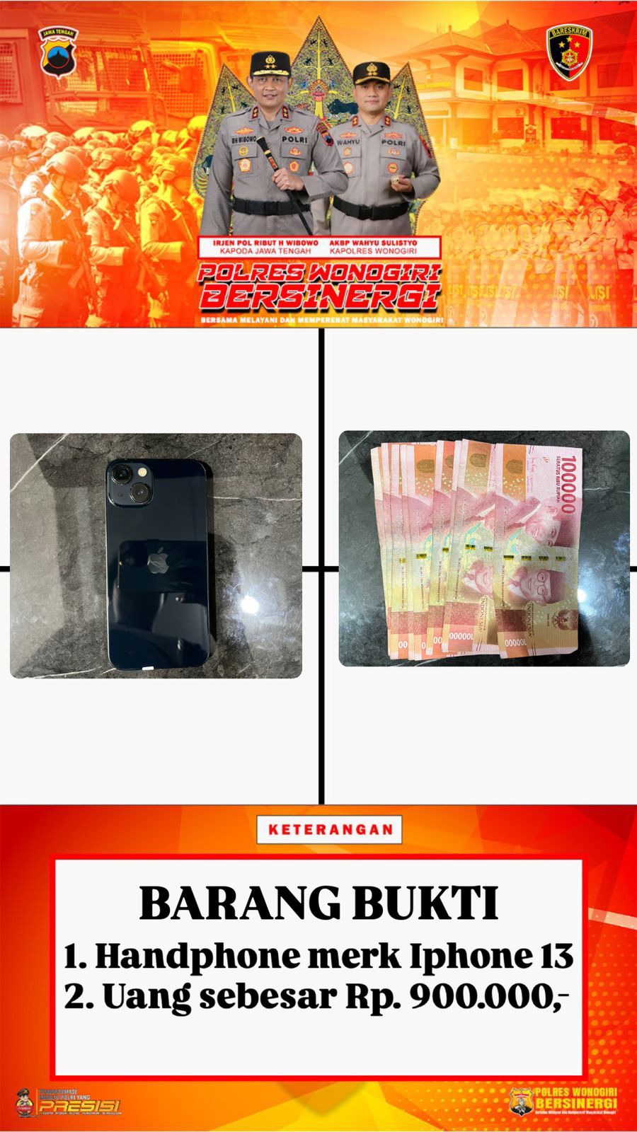 Tim Resmob Satreskrim Polres Wonogiri berhasil mengungkap kasus dugaan tindak pidana pencurian uang sebesar Rp10 juta yang dilakukan secara elektronik melalui aplikasi M-Banking BCA.