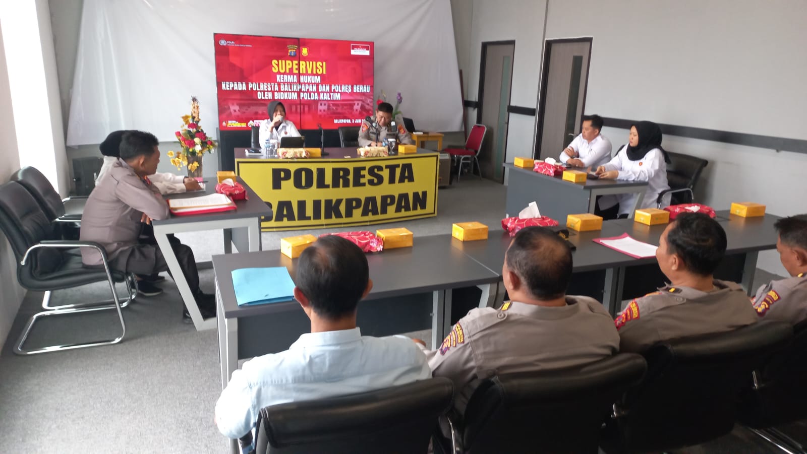 Polresta Balikpapan menerima kunjungan Tim Supervisi Kerja Sama Hukum dari Bidang Hukum (Bidkum) Polda Kalimantan Timur, dalam rangka meningkatkan sinergi dan efektivitas kerja sama hukum dengan instansi terkait untuk mendukung terciptanya situasi Kamtibmas yang kondusif di wilayah hukum Polda Kaltim.