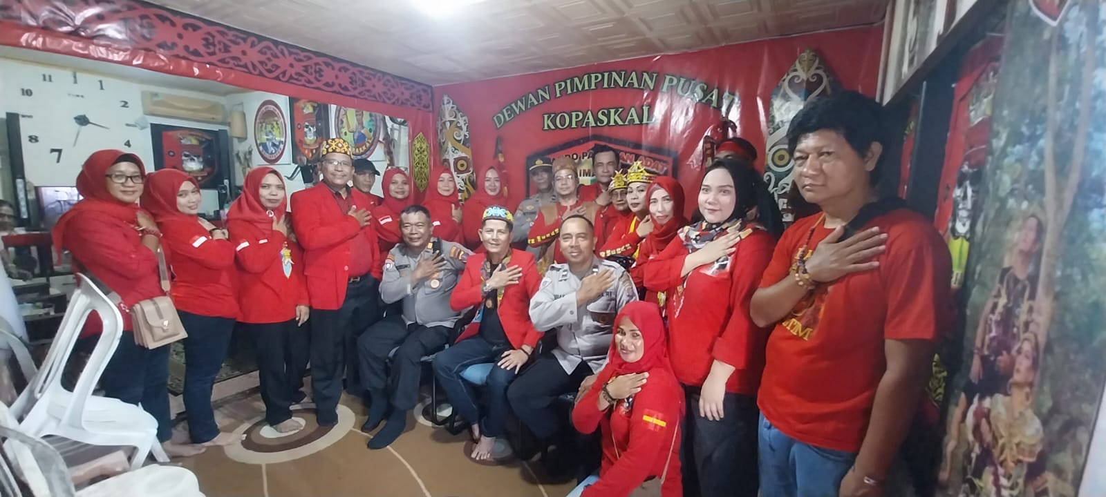 Dalam agenda silaturahmi kali ini, jajaran Satbinmas menyambangi Sekretariat Organisasi Masyarakat KOPASKAL (Komando Pasukan Adat Asli Kalimantan). Kehadiran Polisi disambut langsung oleh para tokoh adat dan pengurus KOPASKAL, di antaranya Ketua M. Adi Saputra, Wakil Ketua Normansyah, Sekretaris M. Syahrani, Bendahara Triyana Wulandari, serta Ketua Seksi Peranan Wanita Ibu Hariyani.