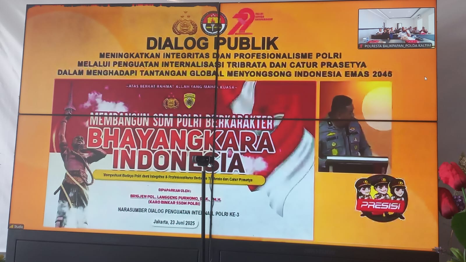 Mengangkat tema “Meningkatkan Integritas dan Profesionalisme Polri melalui Penguatan Internalisasi Tribrata dan Catur Prasetya dalam Menghadapi Tantangan Global Menuju Indonesia Emas 2045”, kegiatan ini menghadirkan sejumlah narasumber dari berbagai instansi, antara lain perwakilan Divisi Humas Polri, Kompolnas, Badan Pembinaan Ideologi Pancasila (BPIP) RI, serta SDM Polri. Dialog dipandu oleh moderator Gresc yang memfasilitasi diskusi interaktif dengan peserta.