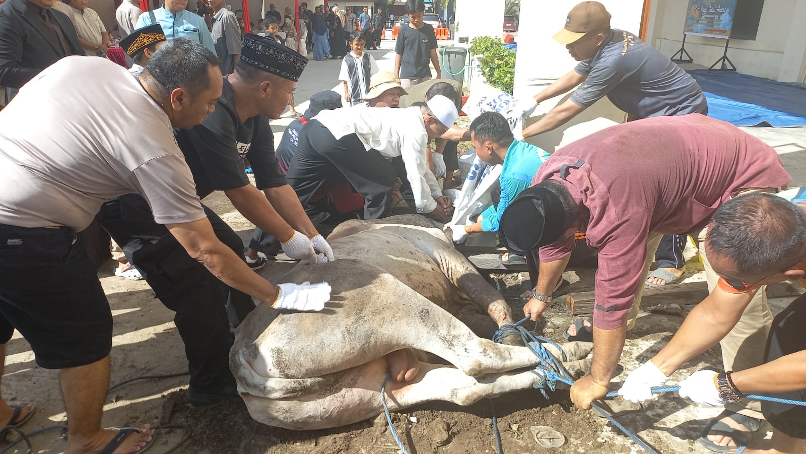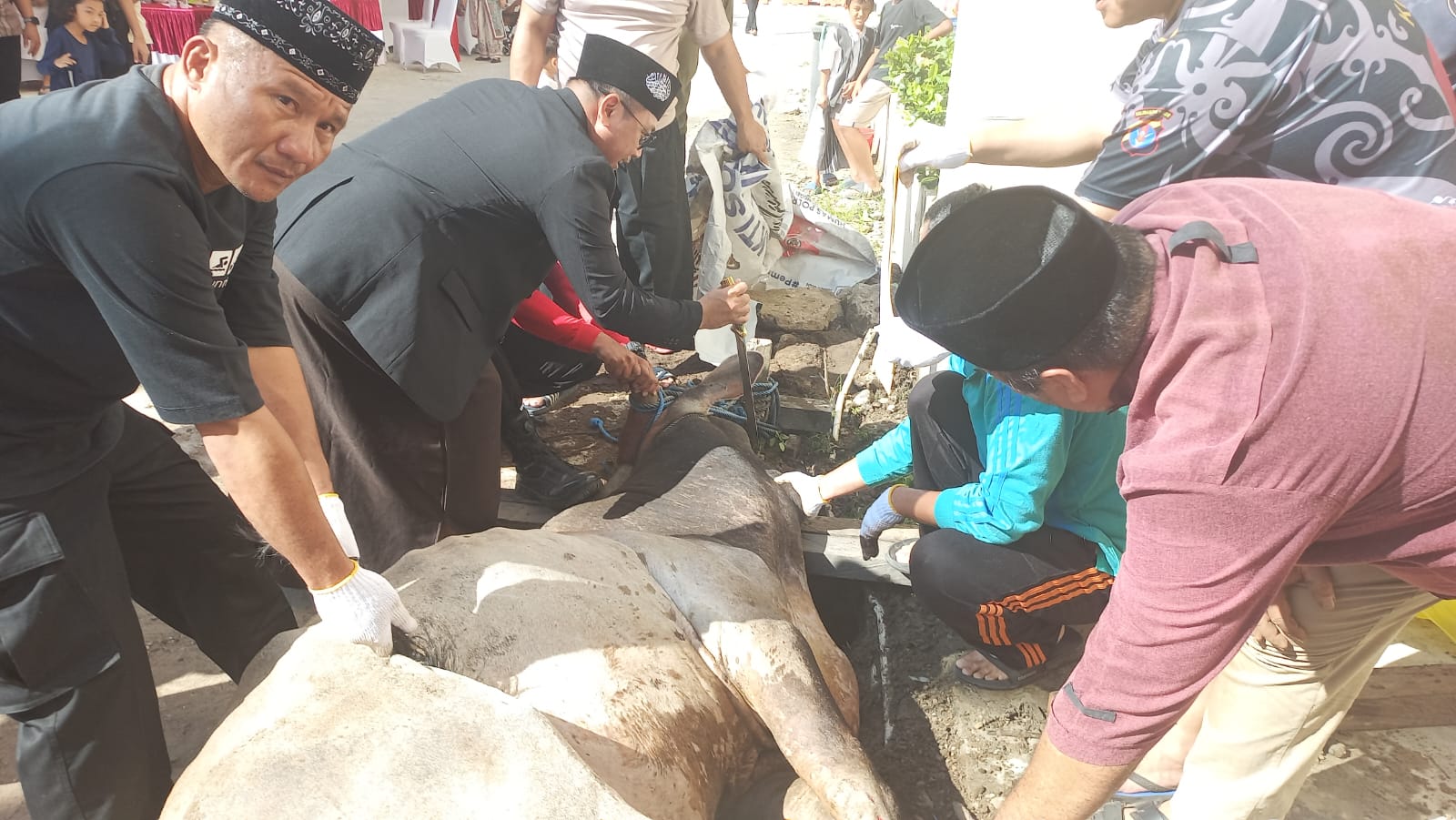 14 ekor lainnya (10 sapi dan 4 kambing) disembelih langsung di Mapolresta Balikpapan.