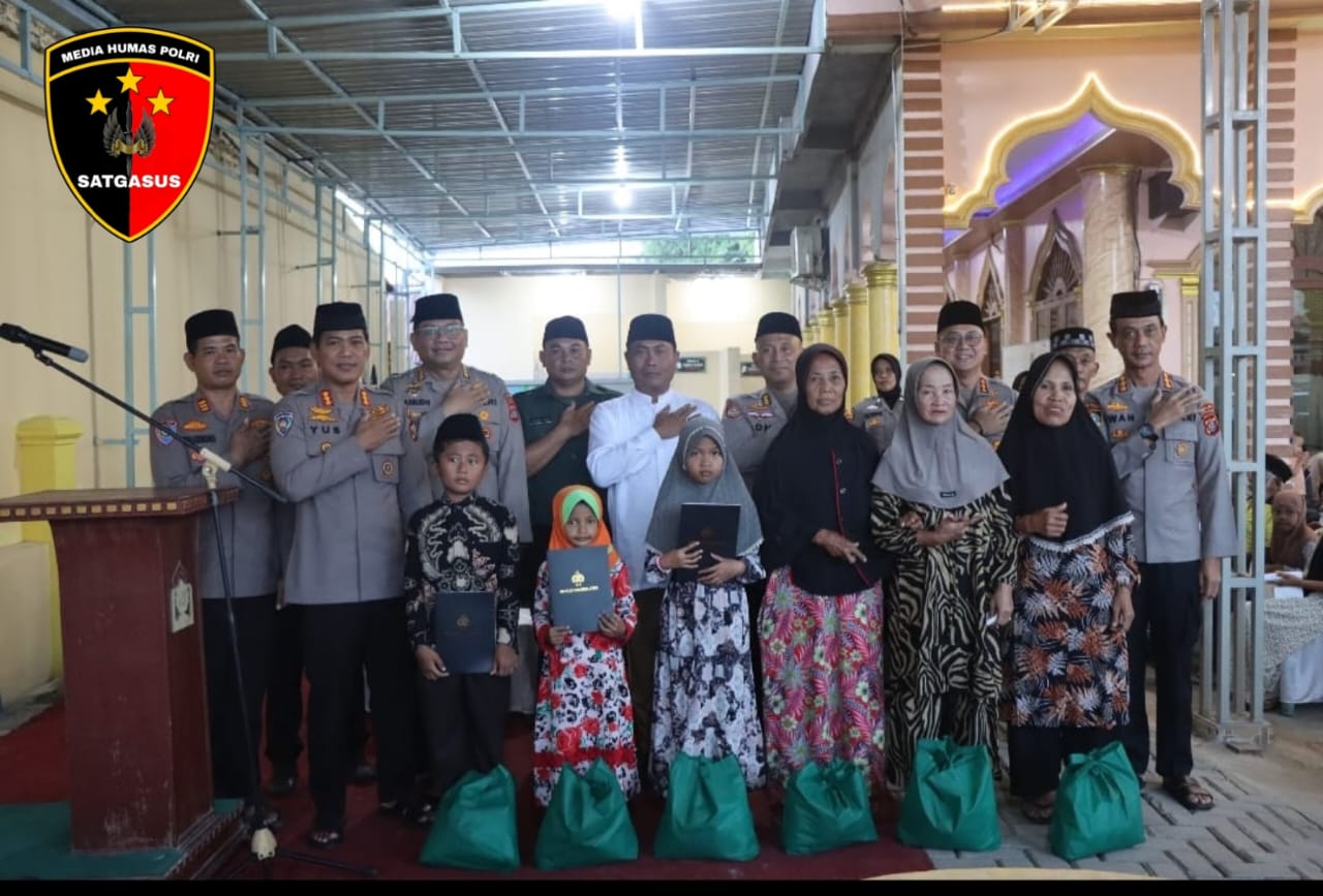 Dalam kesempatan tersebut,Irwasda Polda Sumut dan Kapolresta Deli Serdang menyerahkan santunan dari Kapolda Sumut Irjen Pol Whisnu Hermawan Februanto kepada anak-anak yatim, Santunan ini merupakan bentuk kepedulian dan solidaritas Polri terhadap masyarakat, terutama anak-anak yang membutuhkan.