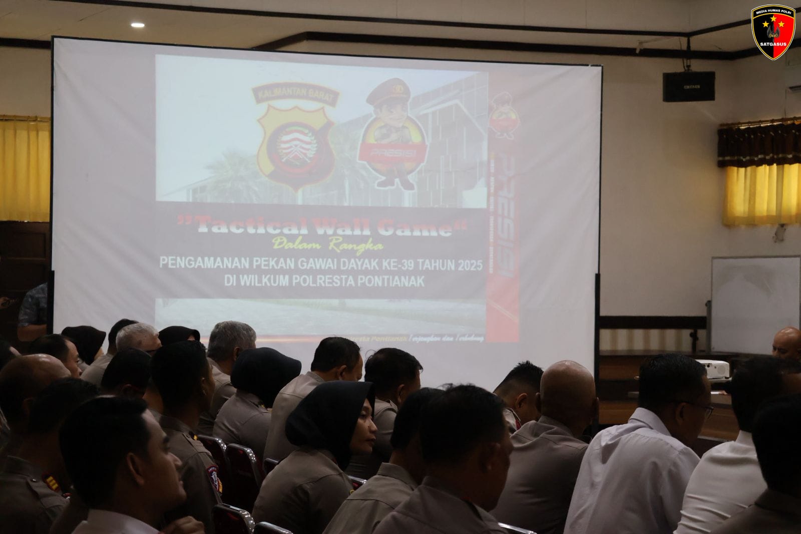 Dalam rangka memastikan kelancaran dan keamanan pelaksanaan Pekan Gawai Dayak (PGD) ke-XXXIX Tahun 2025, Polresta Pontianak menggelar kegiatan Tactical Wall Game (TWG) pada Senin (19/05/2025) bertempat di Aula Polresta Pontianak.