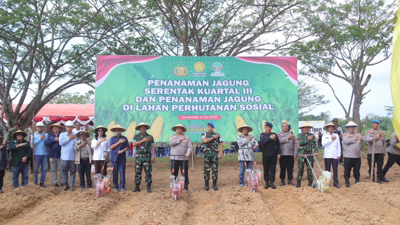 Dalam rangka mendukung program swasembada dan ketahanan pangan nasional, Kepolisian Resor Kota (Polresta) Samarinda bersama Pemerintah Kota Samarinda melaksanakan kegiatan Penanaman Jagung Serentak Kuartal III Tahun 2025 di lahan Perhutanan Sosial, Perumahan Puspita Juita, Jalan Samarinda–Bontang, Kelurahan Sungai Siring, Kecamatan Samarinda Utara, Rabu (9/7).