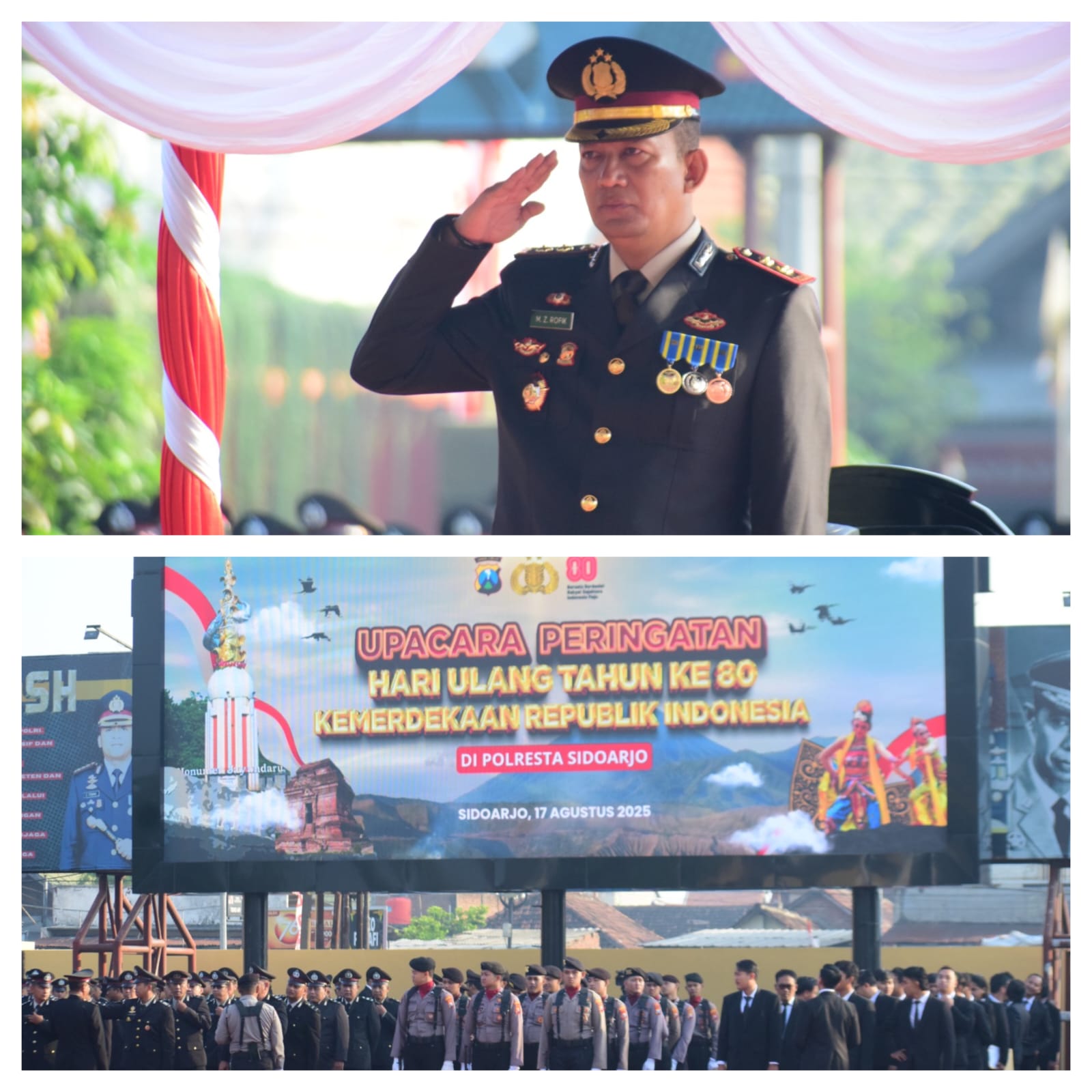Polresta Sidoarjo melaksanakan upacara bendera, dalam rangka Dirgahayu Republik Indonesia ke-80, Minggu (17/8/2025) di lapangan apel Mako Polresta Sidoarjo.