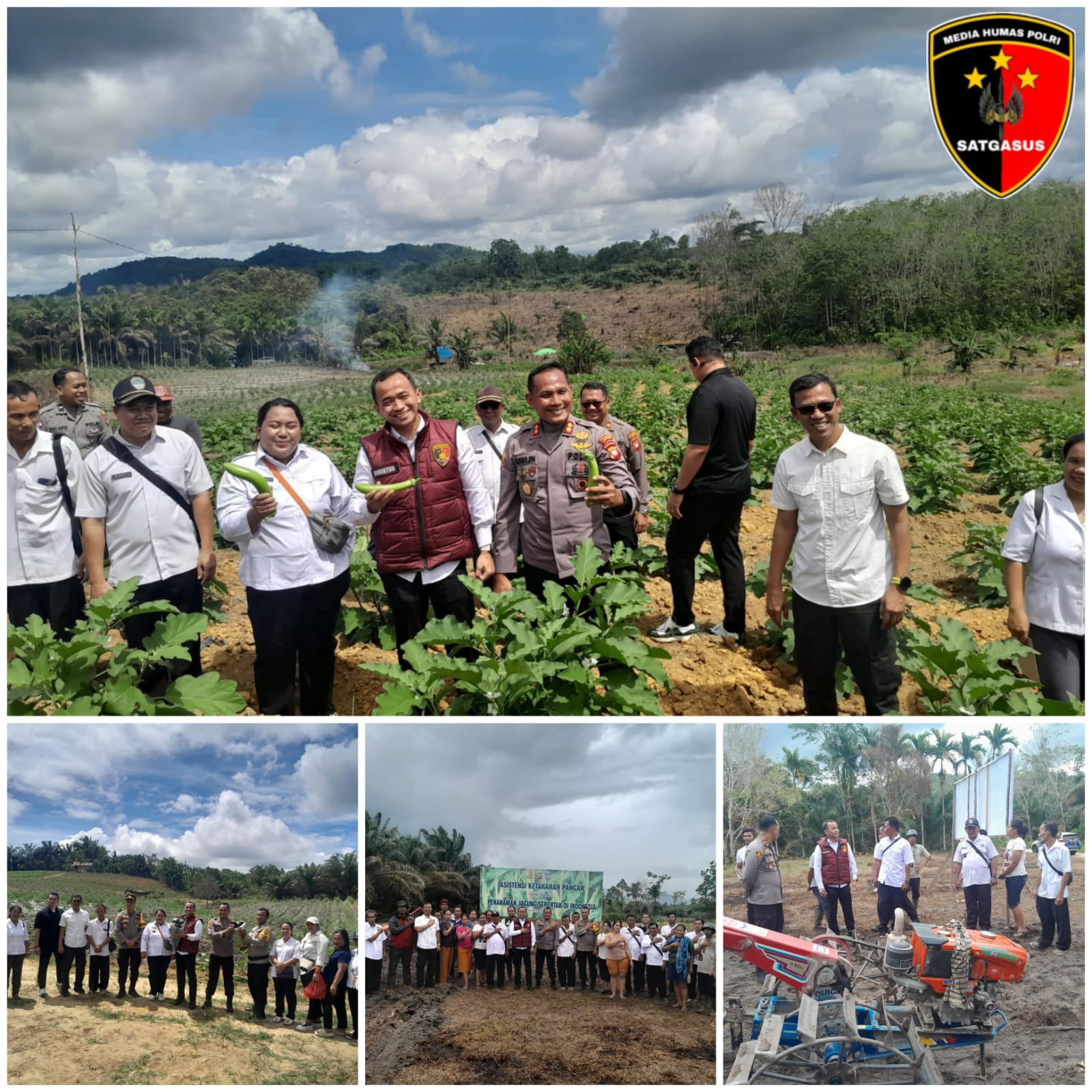 Dalam rangka mendukung ketahanan pangan nasional, Polri melalui Gugus Tugas Ketahanan Pangan menggelar kegiatan Asistensi Program Perkarangan Pangan Bergizi (PPB) dan penanaman bibit jagung secara serentak di Desa Kerohok dan Desa Kayutanam, Kecamatan Mandor, Kabupaten LandakLandak. Rabu (8/1/2025)