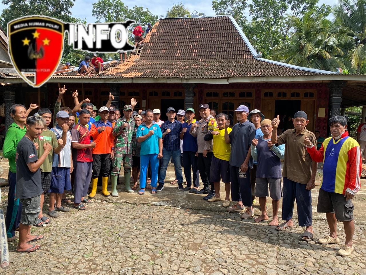 Polsek Jatipurno Polres Wonogiri lakukan kerja bakti menperbaiki atap rumah warga yang rusak tertimpa pohon tumbang dan berikan bantuan sosial (bansos) berupa sembako kepada korban di Desa Jeporo Kec Jatipurno Kab. Wonogiri.