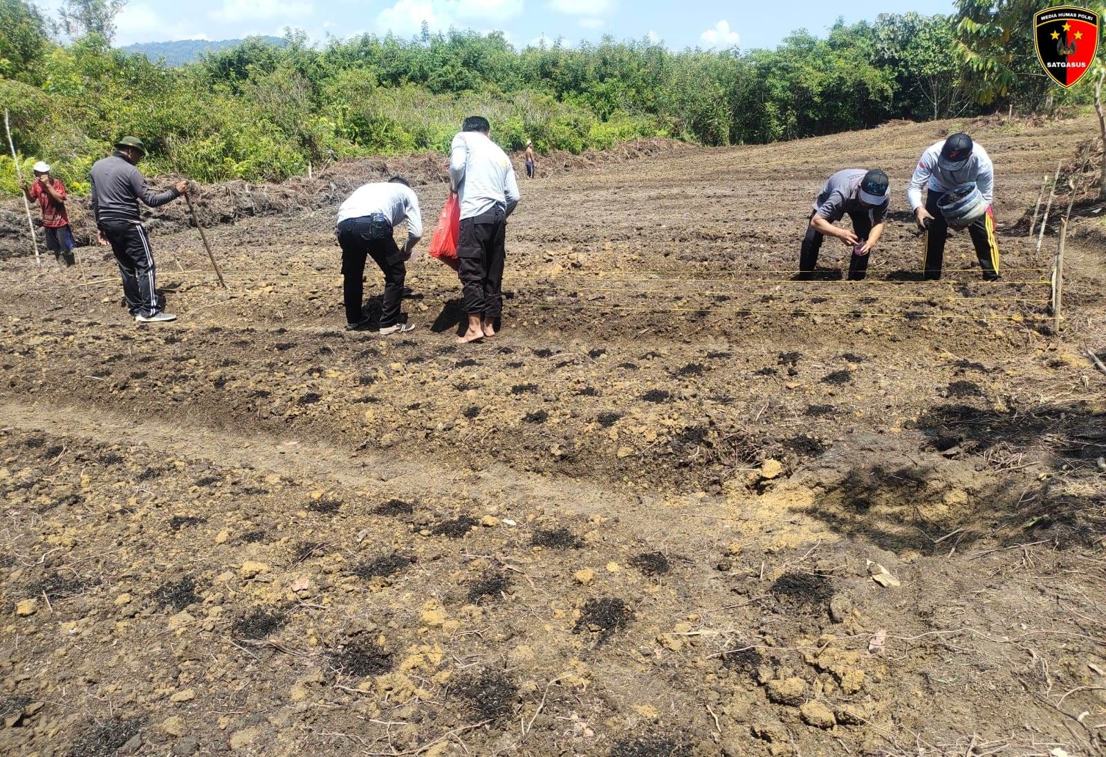 Penanaman yang berlangsung pada Senin pagi (28/7) sekitar pukul 08.00 WIB ini dilakukan di atas lahan seluas kurang lebih 1 hektare, milik salah satu warga bernama Mido. Lahan tersebut telah disiapkan secara optimal sebagai demplot pertanian oleh Polsek Batang Tarang bersama kelompok tani setempat.