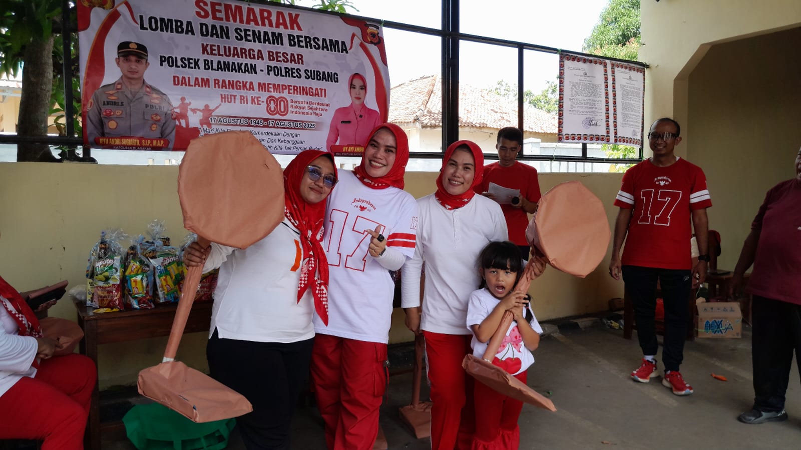 Dalam rangka memperingati Hari Ulang Tahun ke-80 Kemerdekaan Republik Indonesia, Polsek Blanakan bersama Bhayangkari Polsek Blanakan menyelenggarakan serangkaian lomba tradisional yang meriah di halaman Mako Polsek Blanakan, Kecamatan Blanakan, Kabupaten Subang.