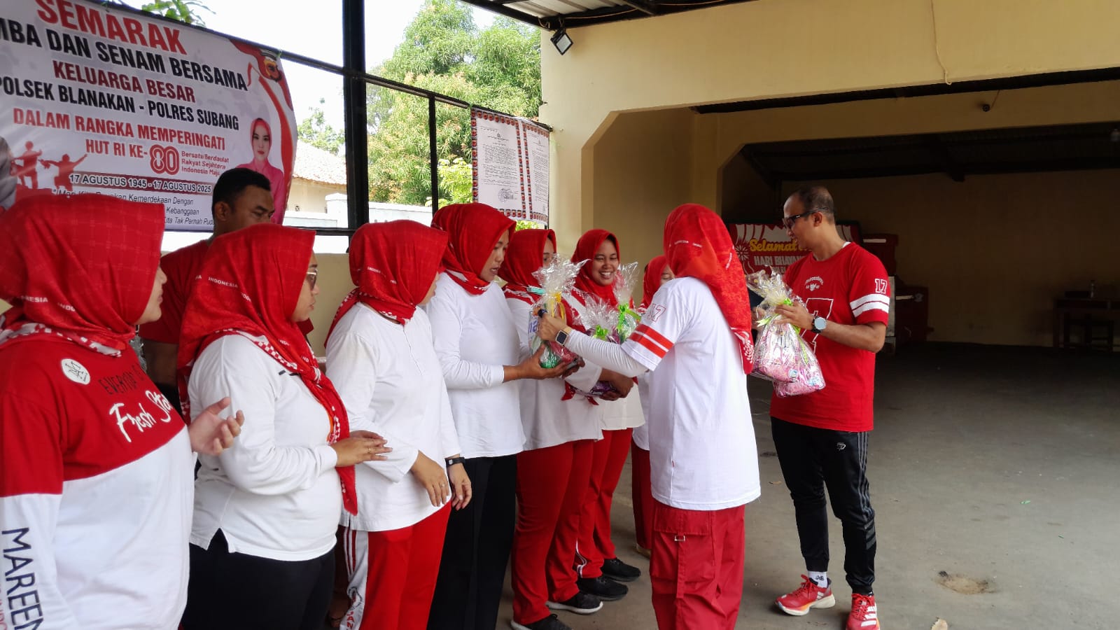 Kegiatan yang berlangsung pada akhir pekan tersebut diikuti oleh personel Polsek Blanakan, Bhayangkari, para stakeholder, serta masyarakat sekitar. Suasana penuh keakraban dan semangat kebersamaan begitu terasa sejak pagi hari, mencerminkan antusiasme warga dalam menyambut momen bersejarah bangsa.