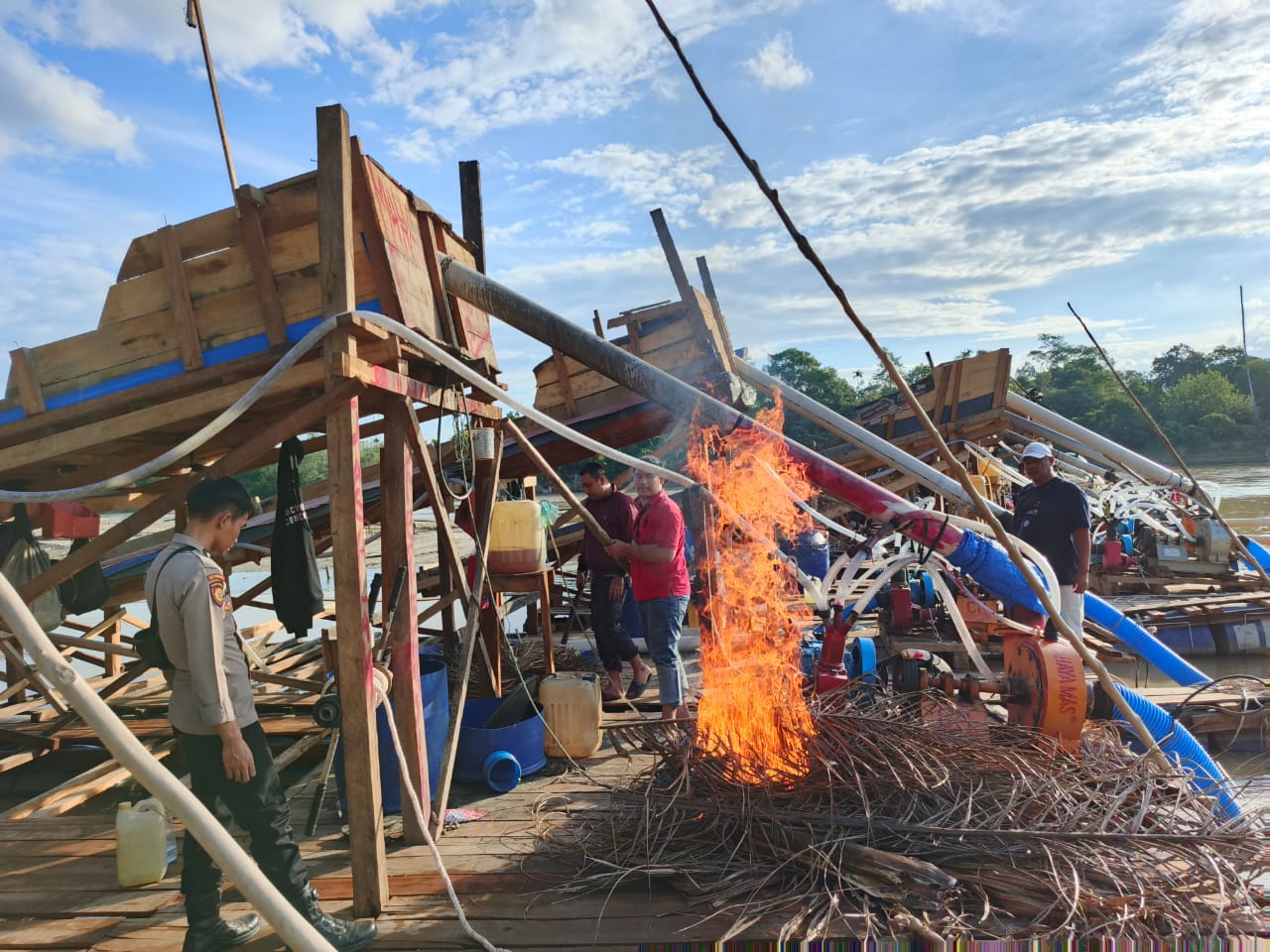 Tanpa kompromi, pihak kepolisian langsung mengambil tindakan tegas dengan merusak dan membakar seluruh rakit tersebut di tempat. Hal ini dilakukan sebagai upaya pencegahan agar peralatan tersebut tidak dapat digunakan kembali untuk kegiatan ilegal yang sama. Meskipun tidak ada pelaku yang berhasil diamankan, tindakan pemusnahan tersebut menjadi sinyal jelas bahwa kepolisian tidak memberikan toleransi terhadap segala bentuk kegiatan tambang ilegal.