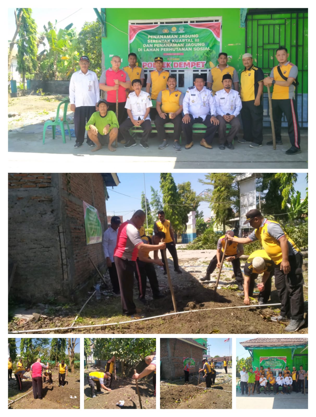 Penanaman jagung kuartal 3 dan penanaman jagung di lahan perhutanan sosial,penanaman jagung terletak di pekarangan sekitar balai Desa yang di lakukan Kapolsek Dempet AKP Ririk Solekul Hadi beserta anggotanya serta dari pihak kepala desa jeruk gulung H. Shobirin dan perangkat desa dalam mendukung program ketahanan pangan nasional