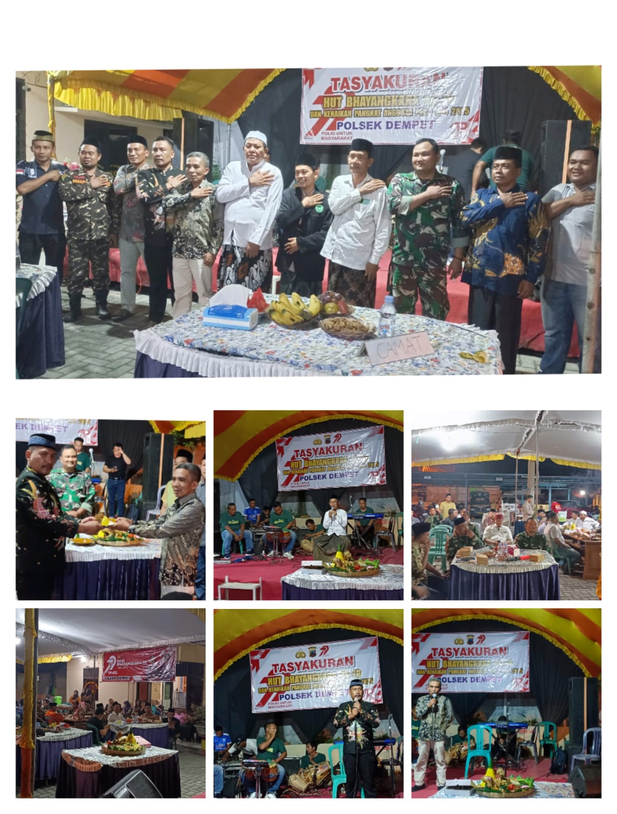 Dempet 5 juli 2025 Tasyakuran Hari Ulang Tahun Bayangkara yang ke 79 dan kenaikan pangkat dua anggota yang di laksanakan di Mapolsek Dempet Polres Demak berlangsung aman lancar dan penuh hikmat