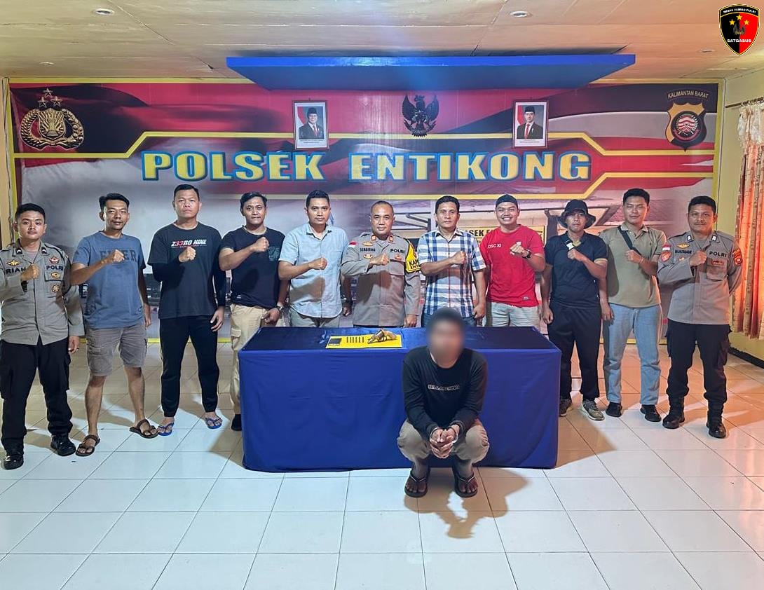 Jajaran Kepolisian Sektor Entikong berhasil mengamankan seorang pria berinisial ALH (26) yang diduga kuat memiliki dan menguasai senjata api rakitan jenis revolver. Penangkapan dilakukan di kawasan Jalan Raya Lintas Malindo, tepatnya di simpang Santo, Desa Entikong, Kecamatan Entikong, Kabupaten Sanggau, sekitar pukul 14.00 WIB pada Kamis (03/07).