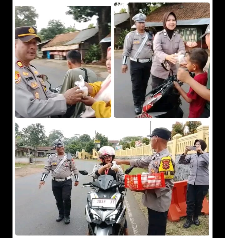 Memasuki hari ke-19 puasa Ramadhan, kegiatan ibadah dan amal kebaikan terus dilakukan umat Islam. di bulan yang penuh berkah ini, Kapolsek Kalijati Polres Subang bersama anggota menggelar bagi takjil kepada pengguna jalan, Rabu, (19/03/2025 ). Pukul 17.00.WIB.