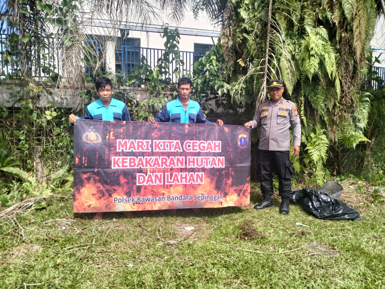Jajaran Polsek Kawasan Bandara Sepinggan Polresta Balikpapan menggelar patroli dan sosialisasi pencegahan kebakaran hutan dan lahan (Karhutla) di kawasan obyek vital Bandara Sultan Aji Muhammad Sulaiman (SAMS) Sepinggan, Senin (11/8/2025) pagi.