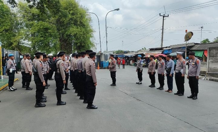 Polsek Klari bersama Polres Karawang, Kapolsek Klari Kompol H Andryan Nugraha SH pimpin apel Persiapan pengamanan aksi Audensi Forum Masyarakat Sumurkondang Bersatu (FSMB) Ke PT. Multi Indo Mandiri (Wings Gruop) di Dusun Karangjati RT. 016/004 Desa Sumurkondang, Kec. Klari, Kab. Karawang. Senin (13/10/2025).