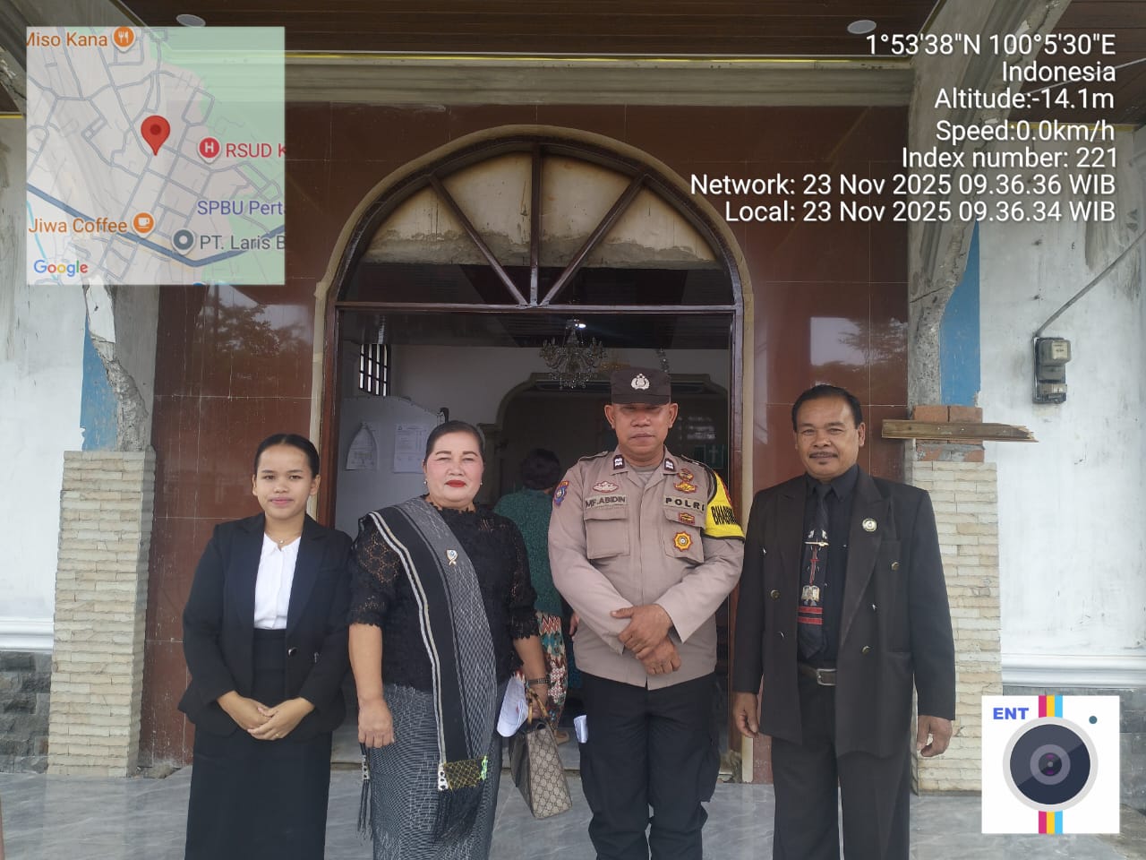Polsek Kotapinang melaksanakan kegiatan Pengamanan Masyarakat (PAM) pada rangkaian ibadah kebaktian gereja yang berlangsung pada Minggu (23/11/2025) mulai pukul 10.00 WIB hingga selesai di wilayah hukum Polsek Kotapinang, Kabupaten Labuhanbatu Selatan. Pengamanan dilakukan untuk memastikan jemaat dapat beribadah dengan aman, nyaman, dan penuh kekhusyukan.